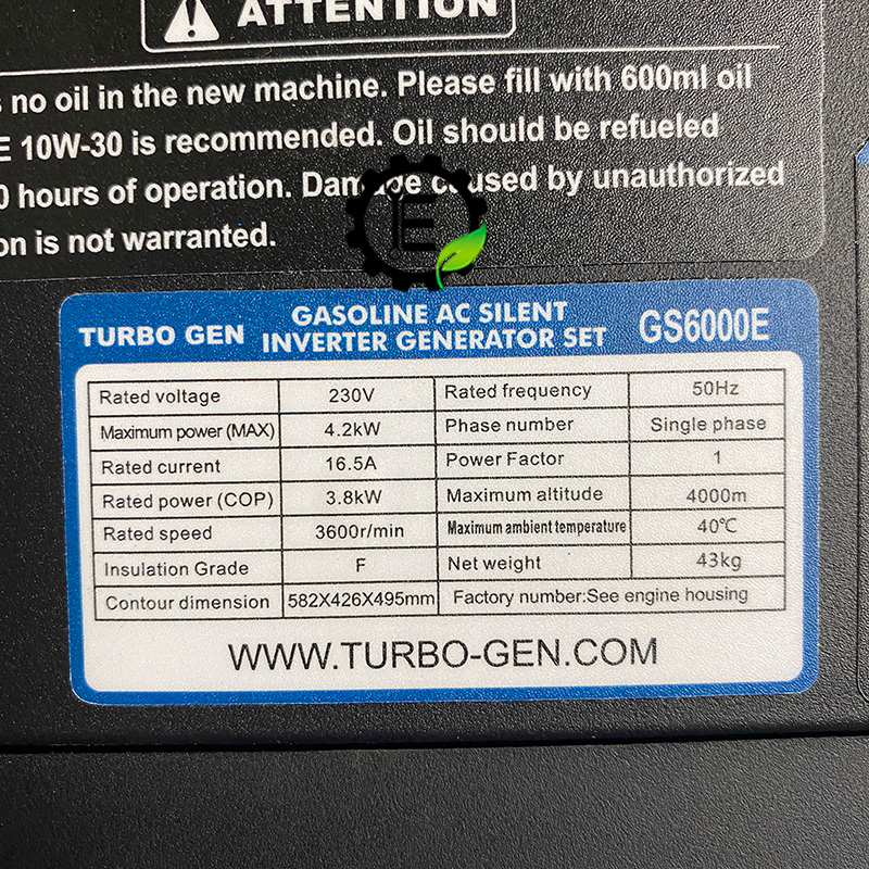 مشخصات فنی موتور برق توربوژن سایلنت 4.2 کیلووات مدل GS6000E: