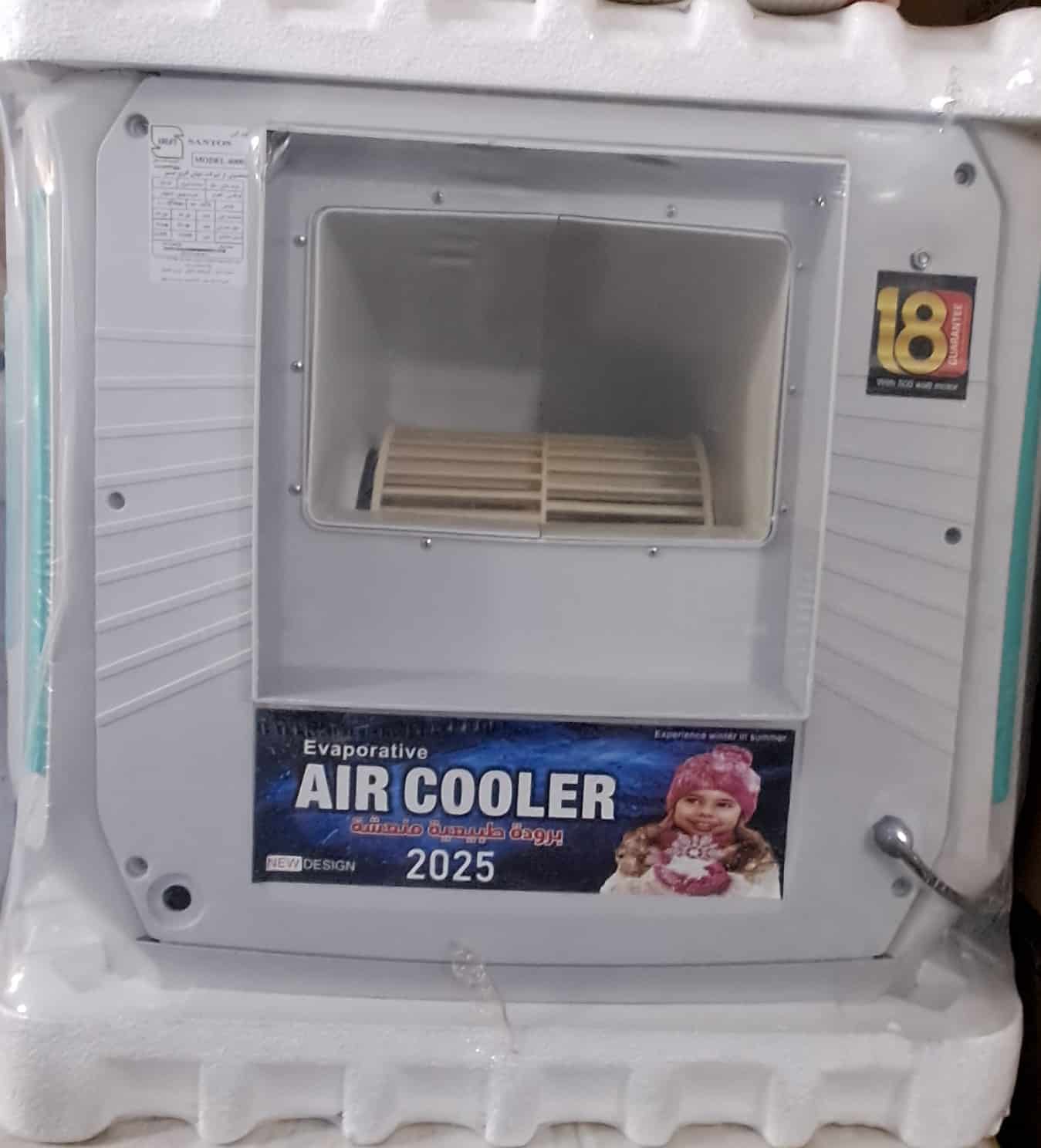 کولر آبی پلیمری سانتوس 4000 با ظرفیت هوادهی 1700 مترمکعب بر ساعت و موتور BLDC بدون تسمه ، انتخابی عالی برای خنک‌کنندگی موثر در فضاهای کوچک (تا 40 مترمربع) است. این کولر با جنس بدنه پلیمری ضد حرارت و بازده خنک‌کنندگی 80% ، عملکردی قدرتمند و مقاوم را فراهم می‌کند.